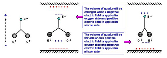 "SG-770SDD 150.0000ML3",石英材料中的二氧化硅分子(SiO2) 在正常狀態下, 其電偶極是互相平衡的電中性. 在(圖二左)的二氧化硅是以二維空間的簡化圖形. 當我們在硅原子上方及氧原子下方分別給予正電場及負電場時, 空間系統為了維持電位平衡, 兩個氧原子會相互排斥, 在氧原子下方形成一個感應正電場區域, 同時在硅原子上方產生感應負電場區域. 相反的情況, 當我們在硅原子上方及氧原子下方分別給予負電場及正電場時, 兩個氧原子會相互靠近, 氧原子下方產生感應負電場,硅原子上方產生感應正電場. (圖二). 然而, 氧原子的水平位置變化時, 鄰近的另一個氧原子會相對的產生排斥或吸引的力量, 迫使氧原子回到原來的空間位置. 因此, 電場的力量與原子之間的力量會相互牽動, 電場的改變與水平方向的形變是形成交互作用狀態. 這個交互作用會形成一個在石英材料耗能最小的振動狀態, 祇要由電場持續給與能量, 石英材料就會與電場之間維持一個共振的頻率. 這個壓電效應下氧原子的振幅與電場強度及電場對二氧化硅的向量角度有相對應的關系.在實際的應用上, 電場是由鍍在石英芯片上的金屬電極產生, 電場與二氧化硅的向量角度則是由石英晶棒的切割角度來決定.