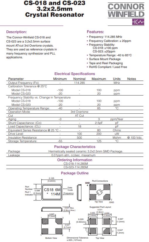 CS-023-114.285M,ConnorWinfield晶振,6G常用晶振參數表