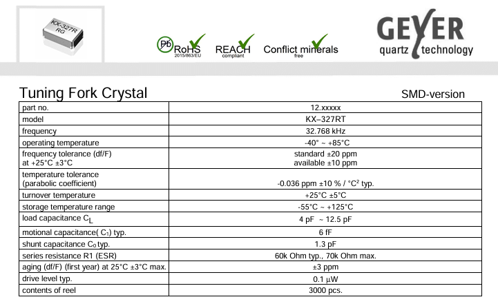 | Geyer晶振 | 單位 | KX-327RT晶振 | 石英晶振基本條件 |