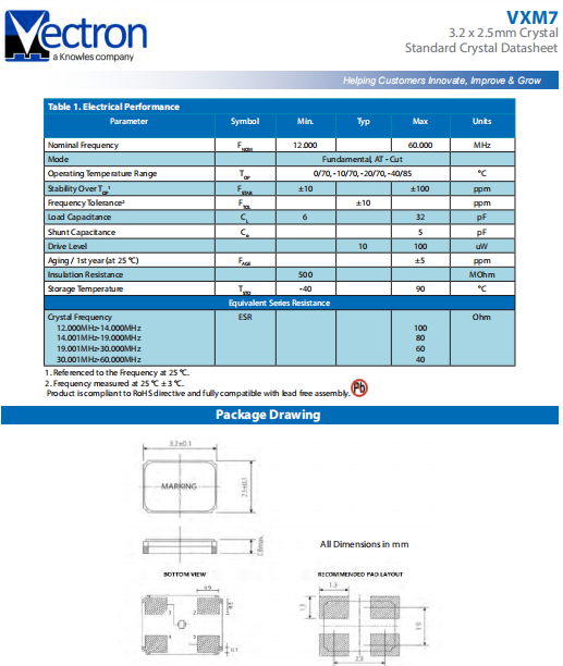 VECTRON晶振,VXM7晶振,高質量晶振.貼片晶振本身體積小,超薄型石英晶體諧振器,特別適用于有目前高速發(fā)展的高端電子數碼產品,因為石英晶振本身小型化需求的市場領域,小型,薄型是對應陶瓷諧振器(偏差大)和普通的石英晶體諧振器(偏差小)的中間領域的一種性價比較出色的產品.產品廣泛用于筆記本電腦,無線電話,衛(wèi)星導航HDD,SSD,USB,Blu-ray等用途,符合無鉛焊接的高溫回流焊曲線特性.