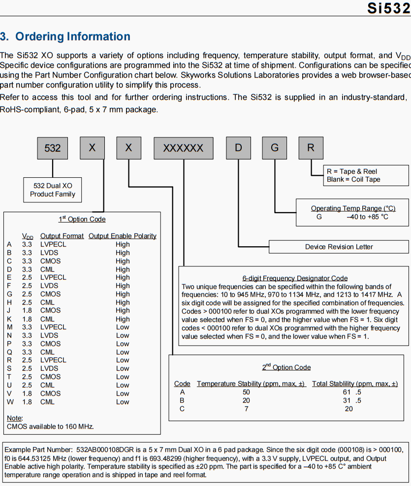 | 511ABA156M250BAG | Skyworks晶振 | Si511 | XO | 156.25 MHz | LVPECL | 3.3V | ±25ppm |