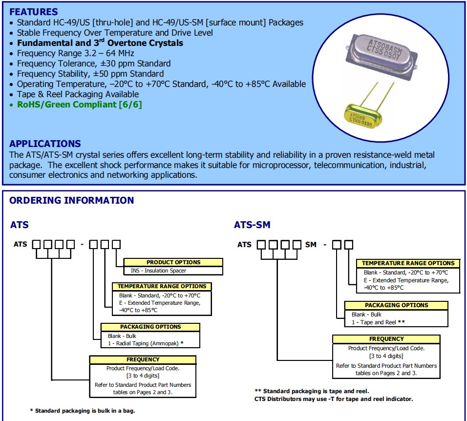 | ATS037BSM-1 | CTS晶振 | ATS-SM | MHz Crystal | 3.6864MHz |