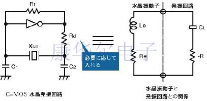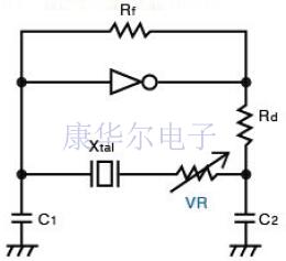 為了確認(rèn)振蕩電路的振蕩余量是否足夠,需要知道振蕩電路的負(fù)電阻(-R).插入與晶振單元串聯(lián)的可變電阻器(VR),并從振蕩停止?fàn)顟B(tài)更改到振蕩開始為止的值.振蕩開始時(shí)的VR值變?yōu)樨?fù)電阻值(-R).為了獲得足夠的振蕩電路的振蕩余量,請調(diào)整C1,C2和Rd,以使負(fù)電阻值至少為石英晶體振蕩器單元有效電阻值的5倍.此外,當(dāng)用于車載等高度可靠的設(shè)備時(shí),建議使用10次以上.