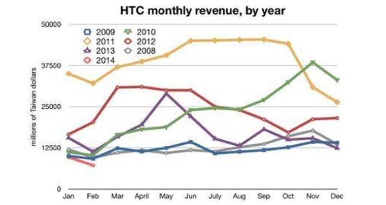 去年,HTC的營(yíng)收是781.6億新臺(tái)幣,創(chuàng)2011年以來最低,并且不到2011年的17%。今年,按照前幾個(gè)月的趨勢(shì),HTC有可能再創(chuàng)新低。