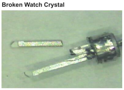 電極通過玻璃對金屬的密封或通過SMD陶瓷封裝(見圖1)連接到穿過基座的引線。電極通過鍍層陶瓷連接到焊盤。晶體單元通常與其他電路封裝在一起,以實現功能齊全的模塊,例如振蕩器或復數濾波器。圖2和圖3說明了簡單的石英晶體振蕩器。由于晶體單元的性質,正確處理非常重要。以下從多個方向入手為大家講講晶振產品損壞解析說明。