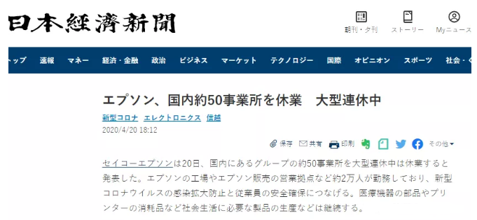 需要注意的是,精工愛普生日本所有據(jù)點(diǎn)雖將在上述期間歇業(yè)停工,不過一些負(fù)責(zé)維持社會生活所必需的產(chǎn)品,例如醫(yī)療機(jī)器零件、墨水等印表機(jī)消耗品將持續(xù)進(jìn)行生產(chǎn)。