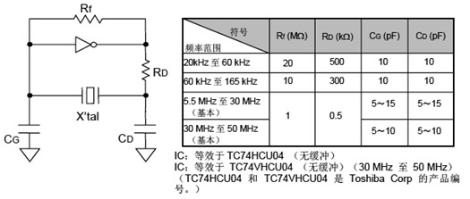 如果振蕩電路中負(fù)載電容的不同,可能導(dǎo)致振蕩頻率與設(shè)計頻率之間產(chǎn)生偏差,如下圖所示.電路中的負(fù)載電容的近似表達(dá)式 CL≒CG × CD / (CG+CD) + CS.