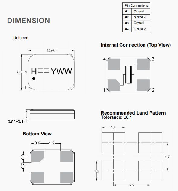 | X3S032000BC1HA-CHPZ | 加高晶振 | HSX321S | 32 MHz | ±10ppm | 12pF |